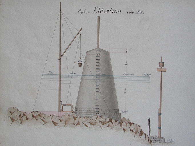 Projet de construction d'un feu sur la Petite Muette : élévation côté sud-est, 1886 (AD 22)Immatriculation