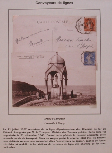 Carte postale de 1922 témoignant de l'ouverture de la ligne de chemin de fer Erquy-Lamballe (collection Grimaud)Immatriculation