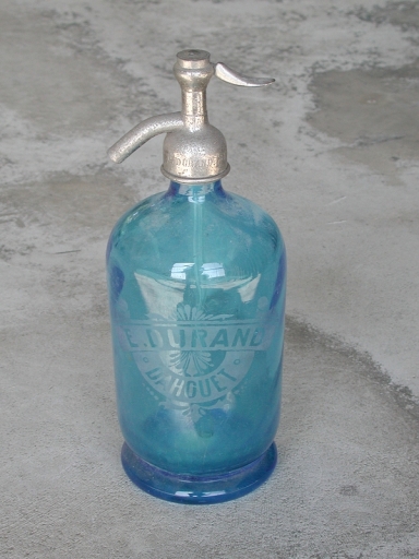 Bouteille en verre colorée brassée pour ou par Emile Durand, négociant à DahouëtImmatriculation