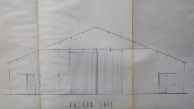 Plan du hangar du chantier Tocqué : façade nordImmatriculation