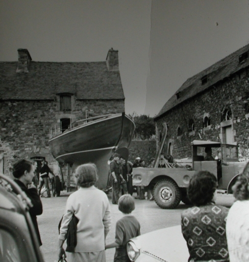 L'ancien grenier à sel dans les années 1960, lors de la mise à l'eau du bateau de plaisance Clophidi, réalisé par Pierre TocquéImmatriculation