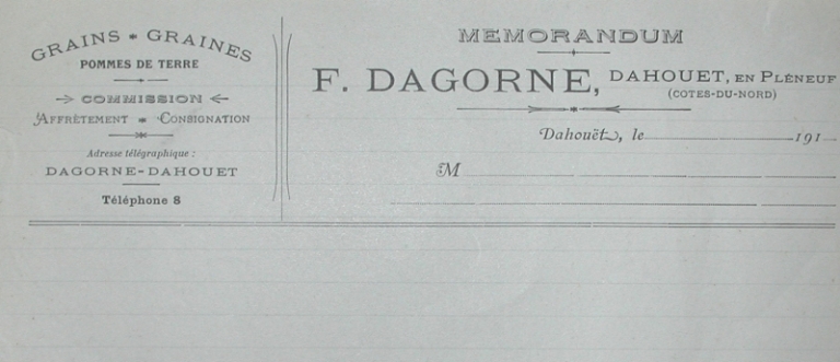 Memorandum au commissionnaire, négociant François Dagorne (collection Grimaud)Immatriculation