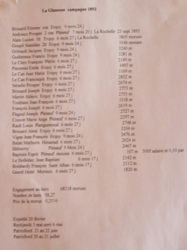 Campagne de 1893 de la Glaneuse : comptage des morues par homme d'équipage (collection Atelier du Patrimoine)Immatriculation