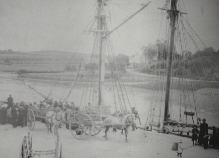 Déchargement d'une goélette de cabotage au mât de charge avec transport ensuite en charretteImmatriculation