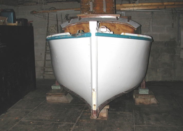 Vue de face, de l'avant du bateau Majaroalge (formes généreuses, fort de l'avant)Immatriculation