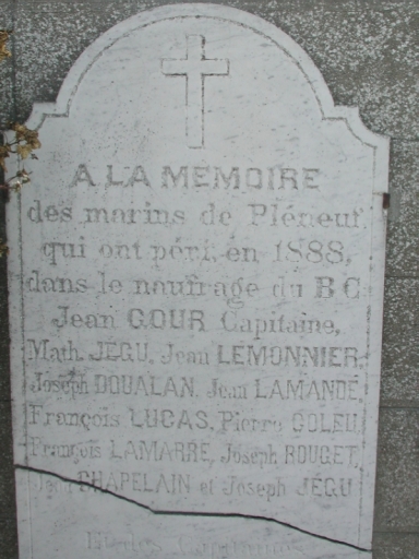 Plaque funéraire aux péris en mer du navire BC, 1888Immatriculation