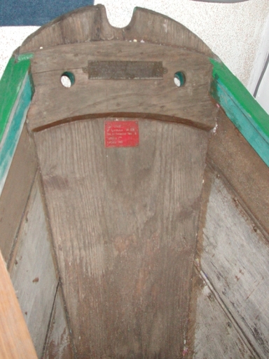 Tableau arrière du doris ous iorme d'écusson (Doris de l'Atelier du Patrimoine)Immatriculation