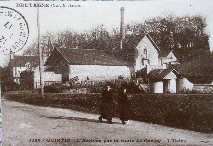 Moulin à papier de Saint-Fiacre, puis usine de blanchiment dite de Fumi-coton, puis distillerie de la Société des Alcools et Levures de l'Ouest, puis minoterie et usine de produits pour l'alimentation animale Le Men, actuellement maison (Quintin),