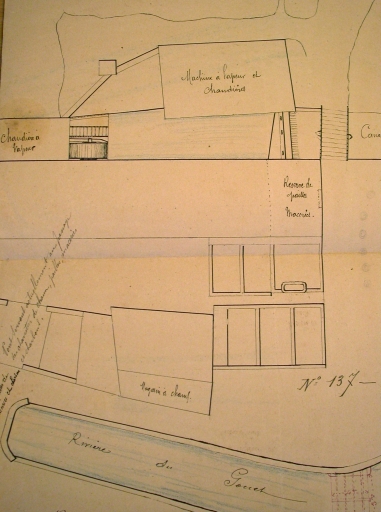 Plan de l'usine de Saint-Fiacre, détail (9 août 1883).Immatriculation
