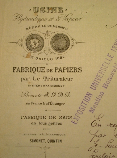 En-tête de lettre de la papeterie (28 août 1890).Immatriculation