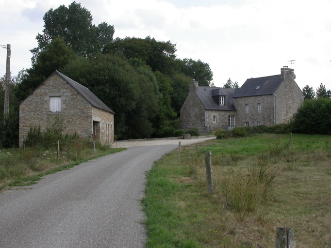 Vue générale du site du moulin de Robien (de gauche à droite : l'écurie, le moulin et le logement).Immatriculation