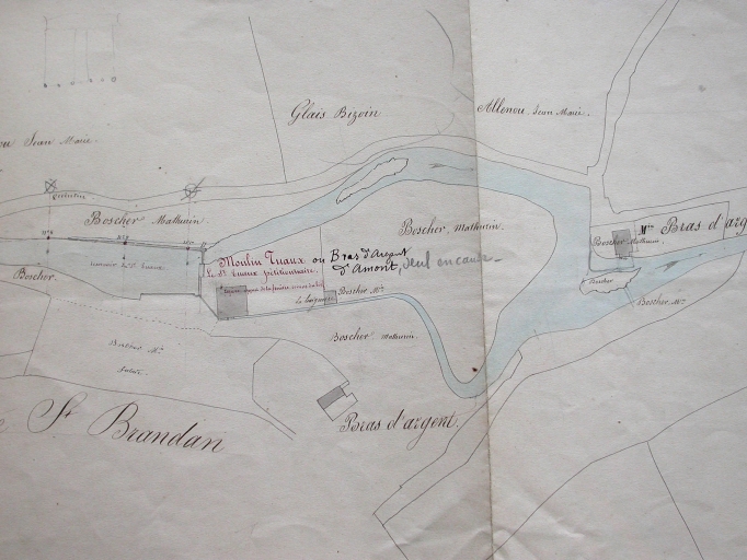 Moulins à foulon et à papier du Bras d'Argent, puis porcherie dite Elevage Quintinais, actuellement usine de produits agro-alimentaires Elquin (Saint-Brandan),