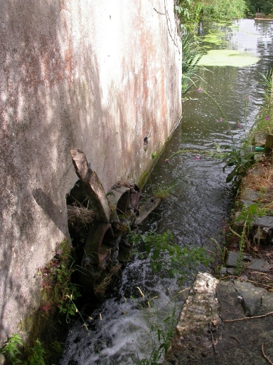 Ancien coursier et vestiges de l'arbre de la roue hydraulique.Immatriculation