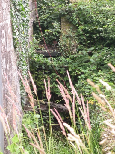 Ancien coursier asséché et arbre de la roue hydraulique, disparue.Immatriculation