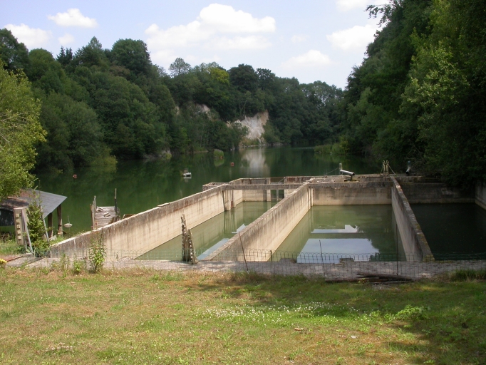 Vue générale de la carrière ; une pisciculture a été installée au cours du dernier quart du 20e siècle.Immatriculation