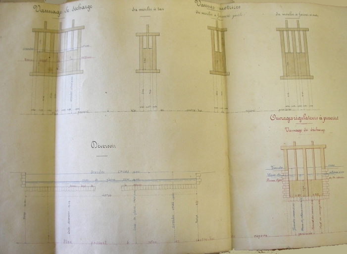 Elévations et coupes des vannages (28 janvier 1870).Immatriculation