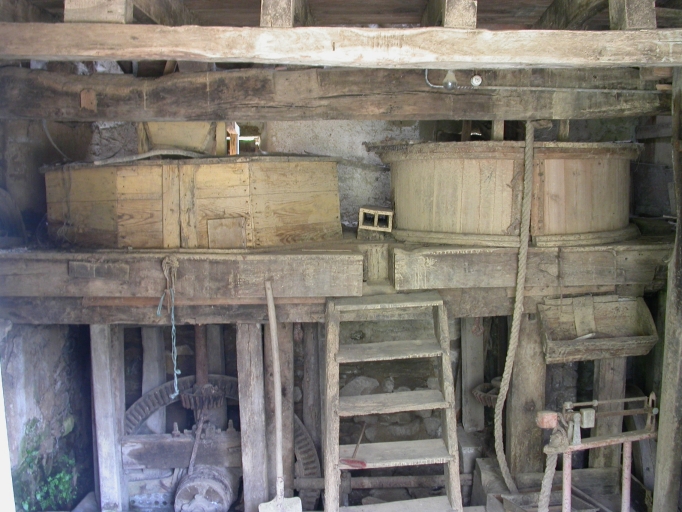 Vue des deux paires de meules subsistant dans l'ancien moulin.Immatriculation
