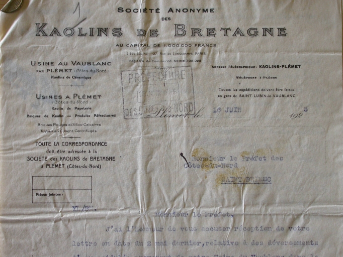 Usine métallurgique dite forges du Vaublanc, puis usine de préparation de produit minéral de la Société des kaolins de Bretagne, le Vaublanc (Plémet),