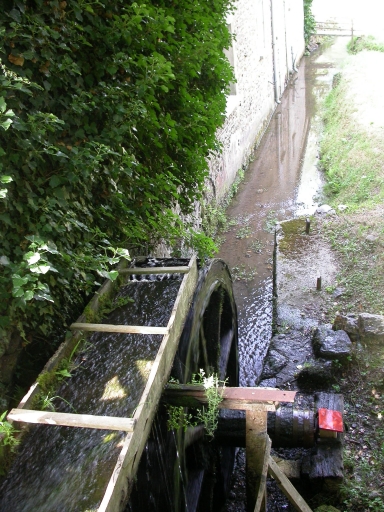 Vue générale de la roue à augets et du canal de fuite.Immatriculation
