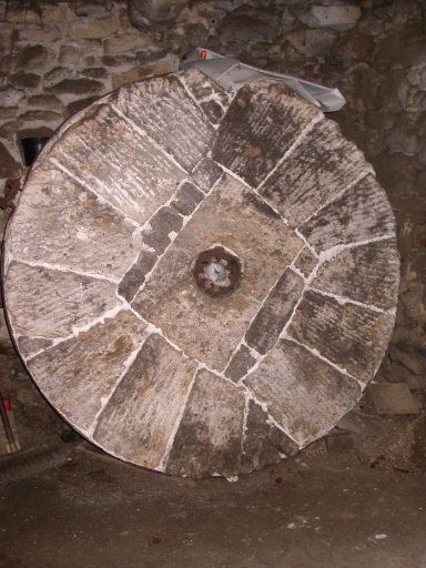 Détail d'une meule rhabillée.Immatriculation