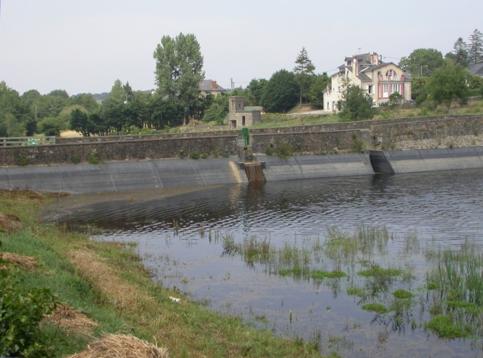 Bassin de retenue, chaussée et logement patronal.Immatriculation