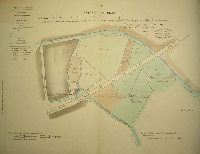 Moulins à farine et à tan, puis minoterie de la Ville, puis de la société Anonyme des minoteries Piéto, actuellement immeuble à logements, 13 rue du Docteur Lavergne (Lamballe fusionnée en Lamballe-Armor en 2019),
