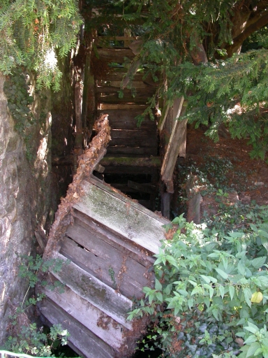 Coursier et vestiges de la roue hydraulique verticale.Immatriculation