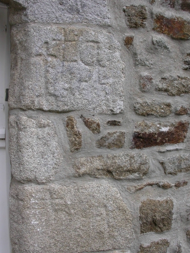 Pierres de taille d'encadrement de la porte d'entrée, détail.Immatriculation
