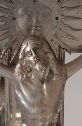 Croix de procession : détail tête du ChristImmatriculation