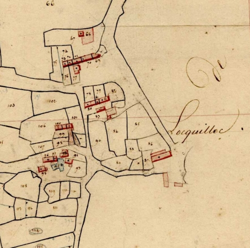Partie ouest du village. Extrait du cadastre de 1824, section A 1 (A.D. Finistère, 3 P 076)Immatriculation