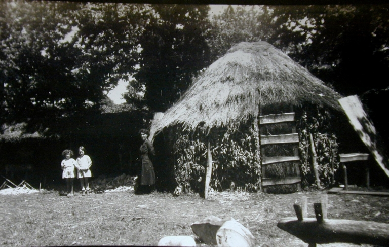 Hutte de sabotier au nord du bourg de Baye, vers 1935 (Coll.Part.)Immatriculation