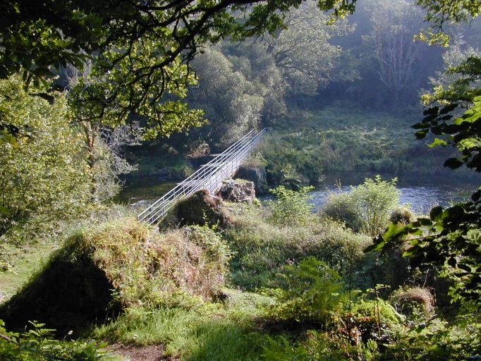 Vue du site en direction est. Au premier plan, les ruines du moulin à eau (commune de Mellac)Immatriculation