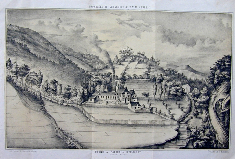 La rivère de l'Isole en 1855. A droite, le moulin de Hilliguet, à gauche, l'usine à papier située sur la commune de Quimperlé (A.D. Finistère, 7 M 222)Immatriculation