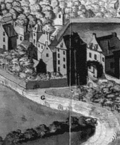 Extrait de la vue cavalière exécutée vers 1737 par Robien (B. M. Rennes, Ms 2436)Immatriculation