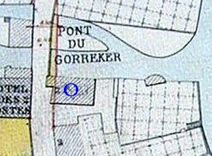 Extrait du plan de la ville par Troalen, 1924. Alignement non réalisé (A.M. Quimperlé)Immatriculation