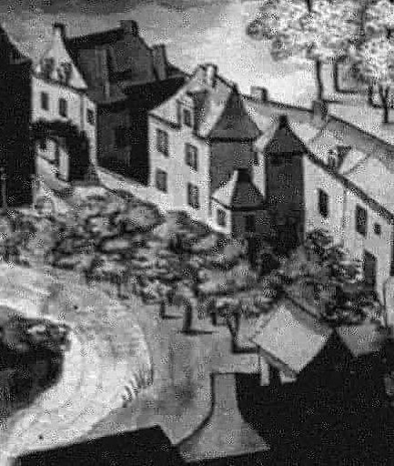Extrait de la vue cavalière exécutée vers 1737 par Robien (B. M. Rennes, Ms 2436)Immatriculation