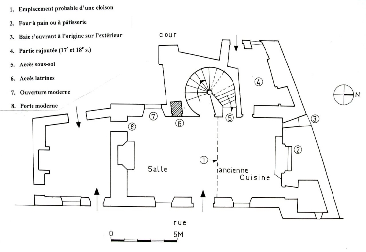 Rez-de-chaussée, distribution et fonctions des espaces (d'après le relevé des services techniques de la ville de Quimperlé)Immatriculation