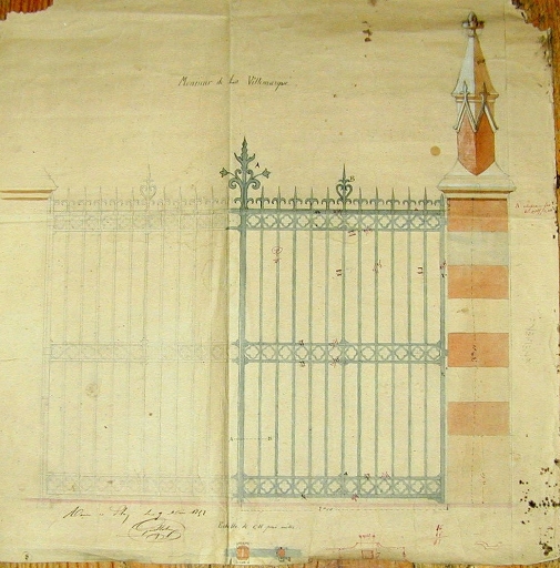 Projet de piliers et de grille par Guilloutoux, 1852Immatriculation
