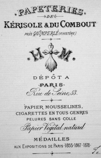 Papier à lettres de l'usine de Mauduit, vers 1886 (A.E. Quimper, 8 L, fonds Bigot)Immatriculation