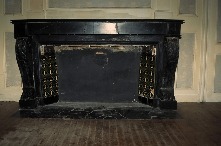 Salon du rez-de-chaussée, cheminée. Etat en 1996 (cl. A. Pennec)Immatriculation