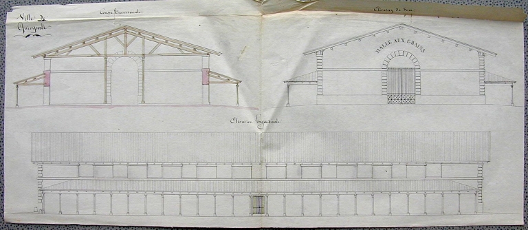 Second projet (non réalisé). Elévations. Joseph Bigot, architecte. Vers 1848 (A.D. Finistère, 122 J 11)Immatriculation