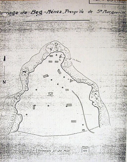 Plan de l'ensemble fortifié de Penn Enez, dunes Sainte-Marguerite, n° 85, rapport Pinczon du Sel. Livre IV, vers 1947, Service Historique de la Marine, BrestImmatriculation