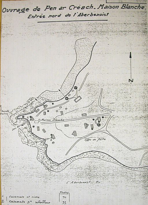 Plan de l'ensemble fortifié de Keravel-Brouennou dit de Penn ar Créac'h Maison Blanche, n° 88, rapport Pinczon du Sel. Livre IV, vers 1947, Service Historique de la Marine, BrestImmatriculation