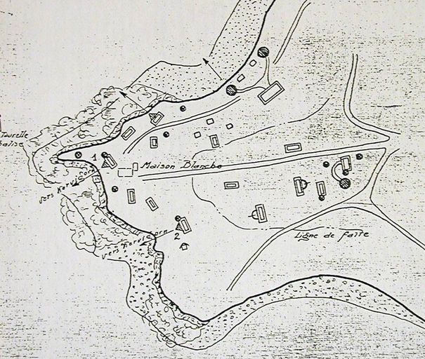 Extrait du plan de l'ensemble fortifié de Keravel-Brouennou dit de Penn ar Créac'h Maison Blanche, n° 88, rapport Pinczon du Sel. Livre IV, vers 1947, Service Historique de la Marine, BrestImmatriculation