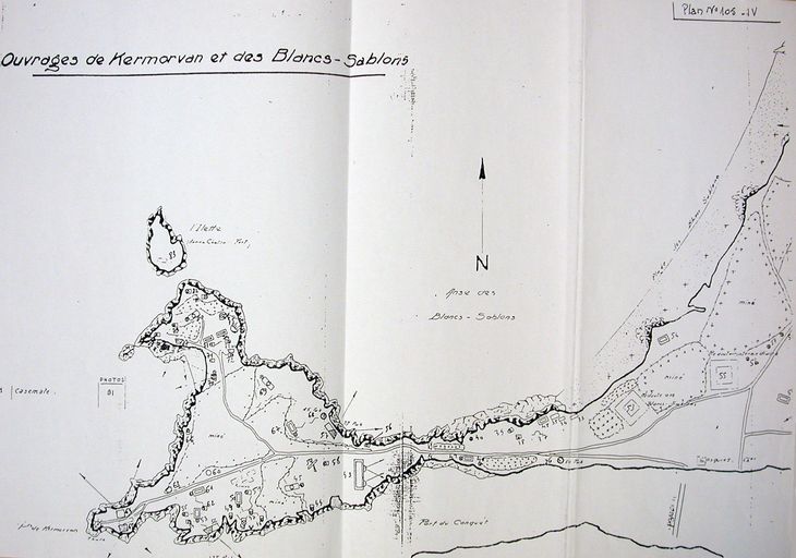 Plan des ouvrages de Kermorvan et des Blancs Sablons, n° 105, rapport Pinczon du Sel. Livre IV, vers 1947, Service Historique de la Marine, BrestImmatriculation