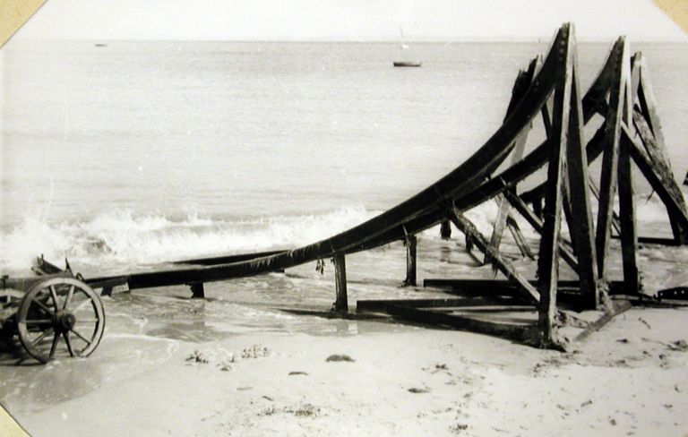 Vue des obstructions et défenses anti-débarquement de la plage du Trez Hir : un rail gutoir, n° 84, rapport Pinczon du Sel. Livre IV, vers 1947, Service Historique de la Marine, BrestImmatriculation
