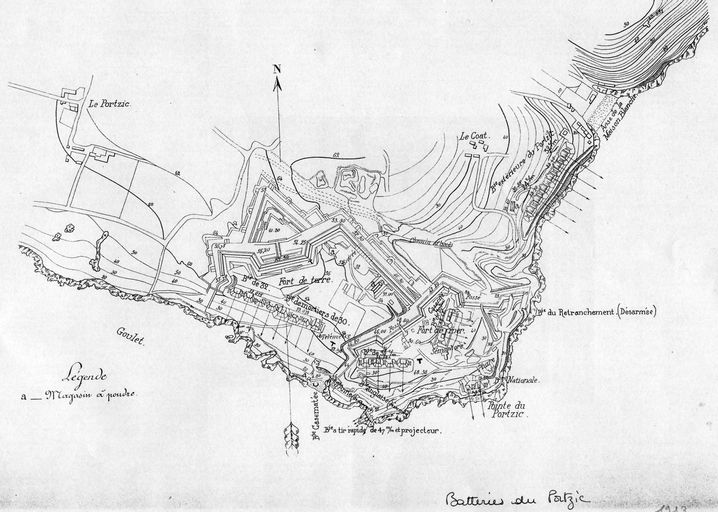 Plan de l'ensemble fortifié du Portzic, Atlas des batteries de côte : place de Brest, 1913, VincennesImmatriculation