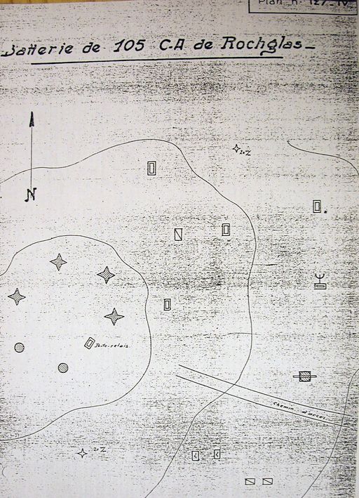 Plan de la batterie antiaérienne du Roch Glaz, n° 127, rapport Pinczon du Sel. Livre IV, vers 1947, Service Historique de la Marine, BrestImmatriculation