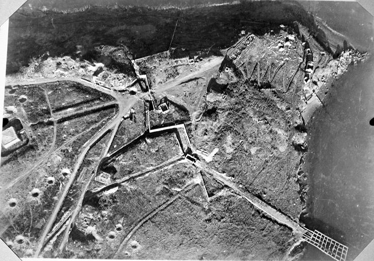 Vue aérienne verticale de l'ensemble fortifié de la pointe des Espagnols, n° 132, rapport Pinczon du Sel. Livre IV, vers 1947, Service Historique de la Marine, BrestImmatriculation