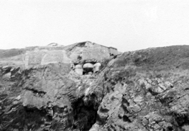 Vue (détail) d'une casemate allemande armée d'un canon de 75 mm orientée vers Camaret-sur-Mer dans le fossé des lignes de Quélern, n° 133, rapport Pinczon du Sel. Livre IV, vers 1947, Service Historique de la Marine, BrestImmatriculation